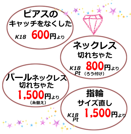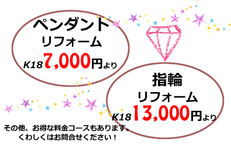 指輪・ネックレス・アクセサリー・ジュエリーのリフォームや修理、お直しに関すること、なんでもお気軽にお問合せください!