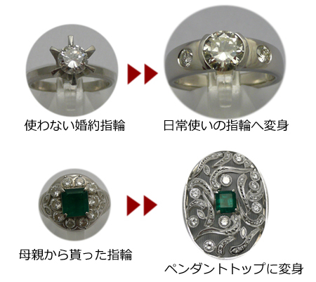 問  私がしていたダイアの指輪を娘に譲りたいのですが、娘はデザインが古いからいらないと言いますが、直せますか?。